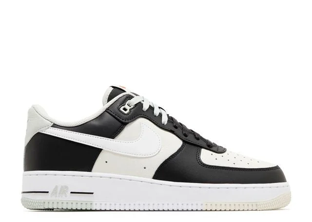 Der Nike Air Force 1 07 LV8 Split mit schwarzem Phantom-Design überzeugt durch hochwertiges Leder in Beige und Schwarz. Der laterale Swoosh setzt einen deutlichen Akzent mit weißem Schatteneffekt, während die Fersenlasche in Grün-de-Gris für einen stilvollen Kontrast sorgt. Die Sohle ist farblich abgestimmt und bietet eine optimale Passform. Ideal für den urbanen Alltag oder sportliche Aktivitäten.