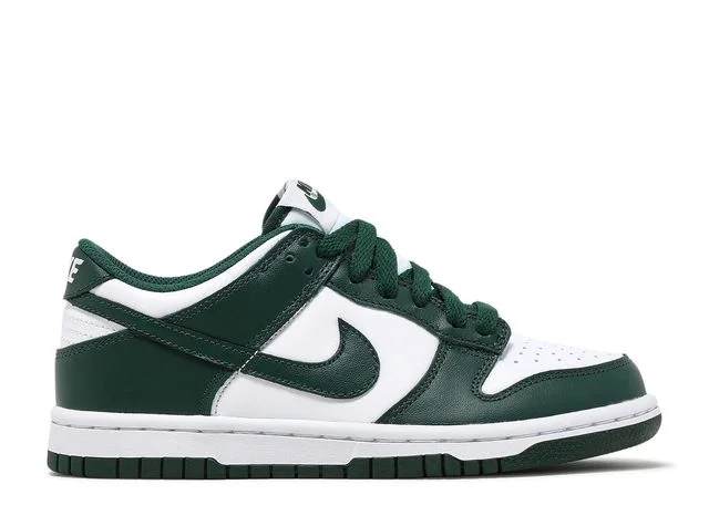 Der Nike Dunk Low Michigan State (GS) vereint ikonisches Basketball-Erbe mit moderner Straßenkultur. Hergestellt aus hochwertigem Leder im zeitlosen Vintage-Design der 80er Jahre, bietet dieser Schuh eine perfekte Kombination aus Komfort und Stil. Die rutschfeste Sohle sorgt für optimale Traktion, während das atmungsaktive Innenfutter für angenehmes Tragegefühl sorgt. Der klassische Schnürverschluss ermöglicht eine individuelle Passform. Ideal für Basketball-Fans, Sneaker-Sammler und alle, die lässigen Retro-Look lieben – perfekt für den Alltag oder besondere Anlässe.